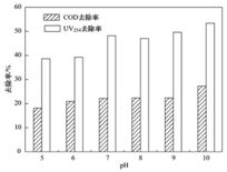 圖 1pH對(duì) COD和UV254去除的影響Fig.1Effect of pH on the removal of COD and UV254during ozonation